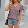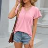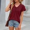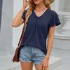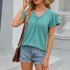 Damen Mode V-Ausschnitt Locker Kurzarm T-Shirt Top