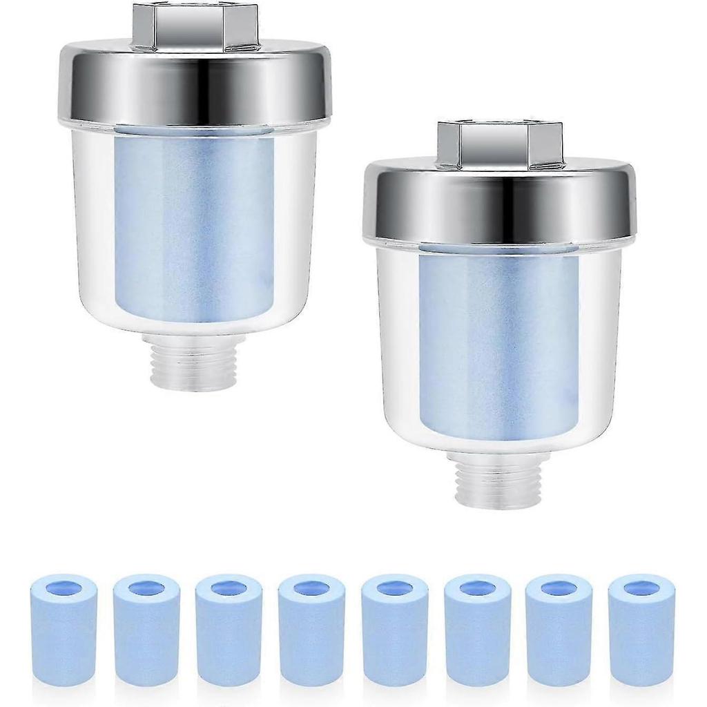 Pack Of 2 Shower Filters For 1/2 Inch Connections, Shower Filter With 10 Interchangeable Blue Filters - DD