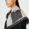 DCSC2E021BK [Silk 100%] Black DD Chain Pattern Silk Square Scarf features an elegant black color and a distinctive DD chain pattern by Daks, making it a stylish design. Made from 100% silk, this scarf is soft and luxurious, perfect for various daily styling options.