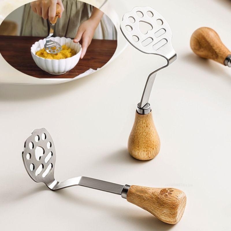 Edelstahl Kartoffelstampfer Krallenmuster Holzgriff Manuell Obst Gemüse Stampfer Küchenzubehör