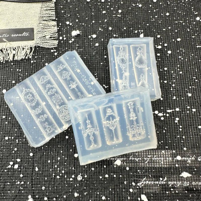 Nails Mold Manicure Templates For Nails Crafts 3D Baroque Vase Candle Holder Silicone Mold Nail Art Decoration DIY Transparent