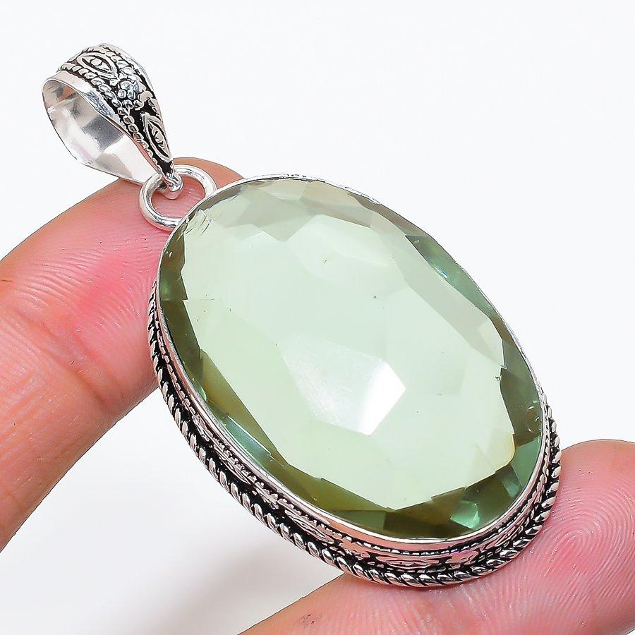 Natürlicher Peridot Edelstein Handgefertigter 925er Sterling Silber Schmuck Anhänger 2,44" AP-14229