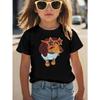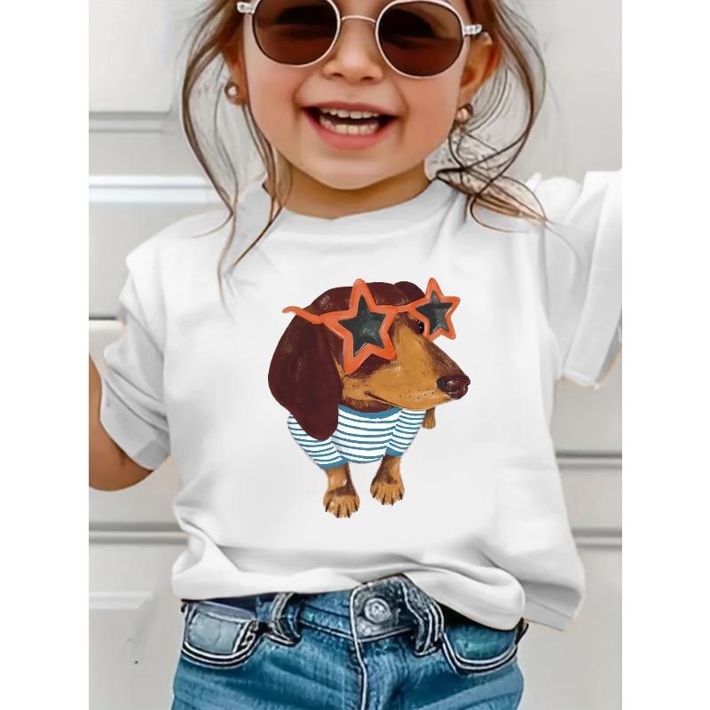 European Size Girls Round-neck Short-sleeved T-shirt with Cartoon Eyes Dog Pattern Print