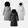 The Kolon Sports Women's Antarctica Long Down is designed with excellent insulation. It provides the best thermal performance in various environments, using WINDSTOPPER material to block the wind and allowing for excellent breathability. The outer filling consists of European goose down, enhancing practical thermal performance. Color options include Gray, Light Gray, and Black (without hood), and various size options are available.