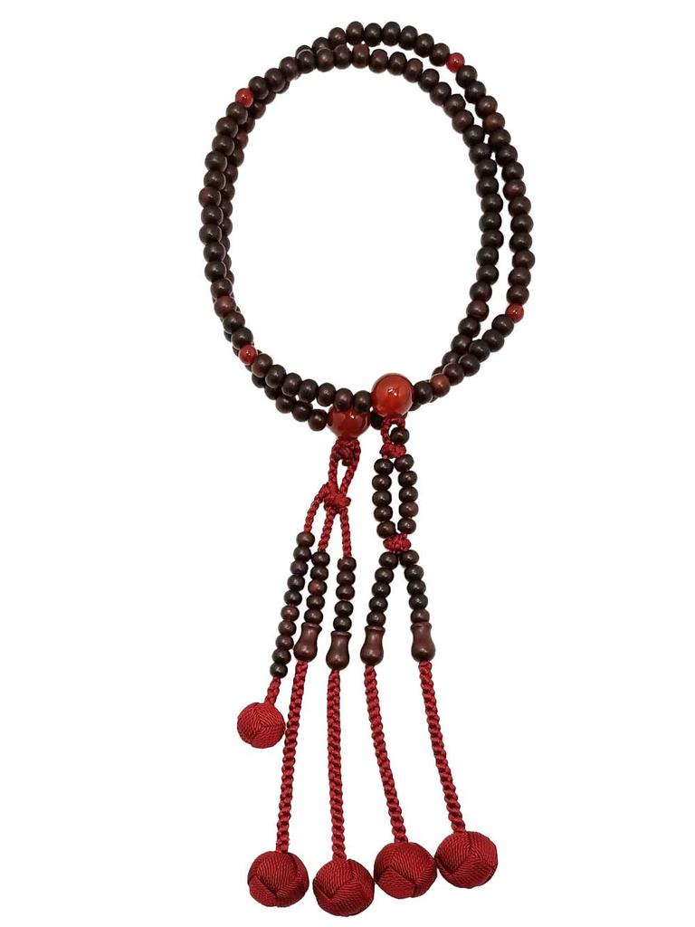 Tsuchiya Nenju Shop Women Nichiren Buddhist Kyoto Prayer Beads Matte Rosewood Agate Inlay Pure Silk Tassel Paulownia Box 5mm Kyoto Certified Japan