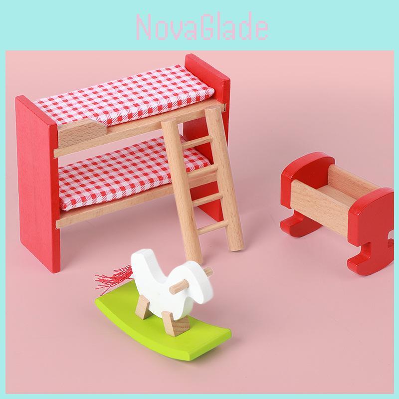 Holz-Simulation Mini Schlafzimmer Küche Wohnzimmer Kinder Szene Spielzeugset Für Fantasievolle Kinder Rollenspiel Und Eltern-Kind-Interaktion