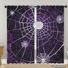 Set aus 2 Spinnennetz-Vorhängen Flach Digitaldruck Kräftiges Rot Schwarz Spinnennetz Gotisches Muster Horror-Thema Raumdekor Aus Polyester