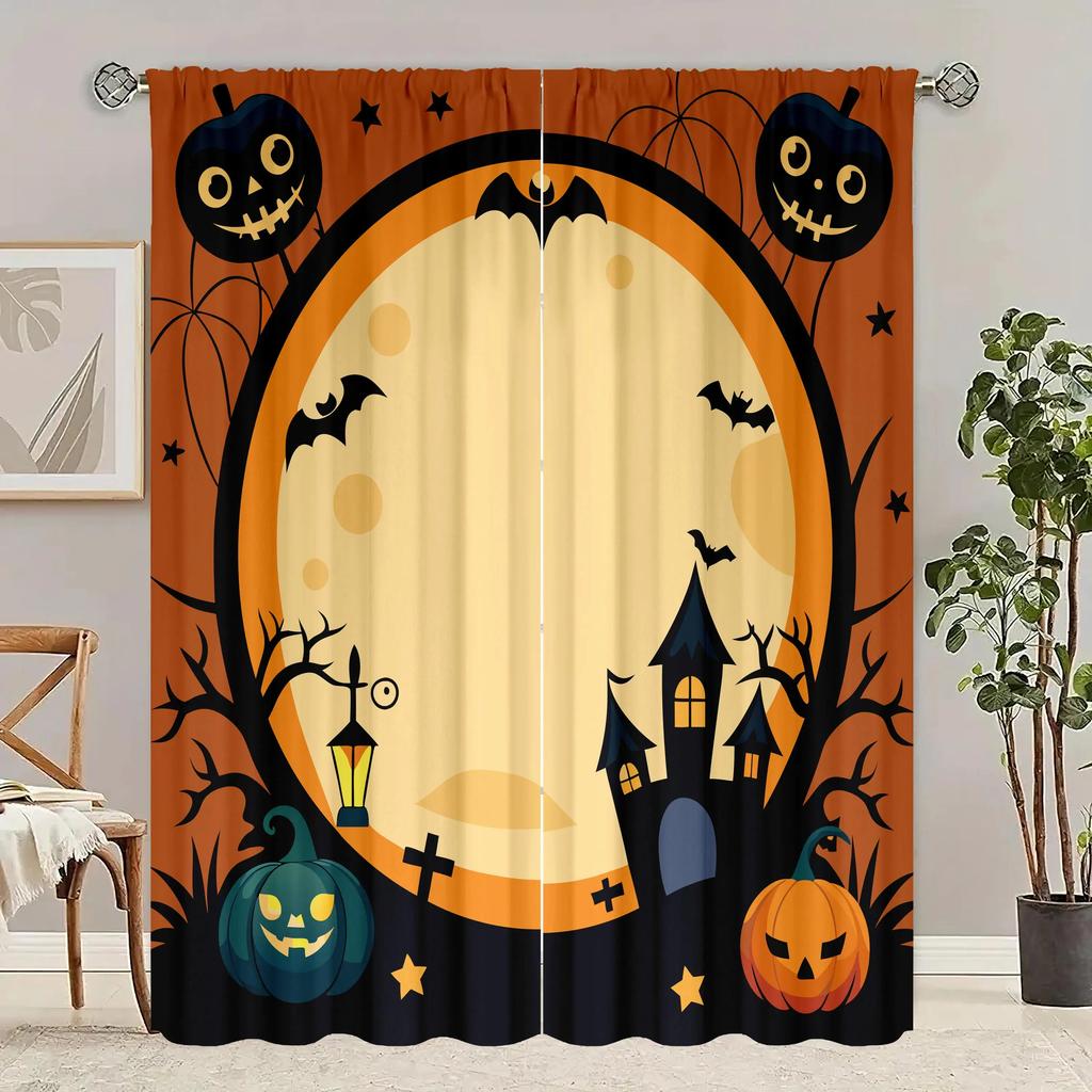 Elegant Spooky Halloween Printed Curtains Piece Polyester Set Bedroom Living Room Study Decor Festive Window Treatment Curtain Perfect For Area