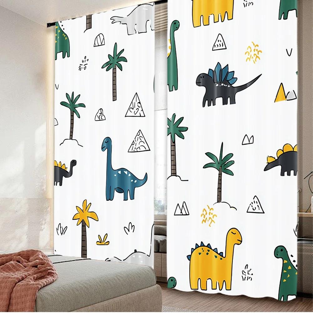 Set Of 2 Flat Printing Window Drapes Colorful Coon Dinosaurs Digital Printed Polyester Festive Wall Decor Perfect Curtain