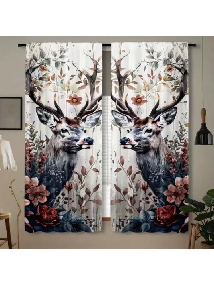 Set aus 2 Hirsch-Polyester-Vorhängen Energieeffiziente Thermisch Isolierte Vorhänge Heimdekoration Vorhang mit Verdunkelung