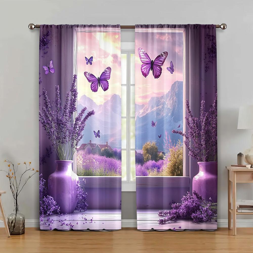 Drapes Lavender Scene Windowing Fabric Without Electricity Holiday Decorations Suitable Bedroom Curtain Polyester Machine Washable Perfect For Decor