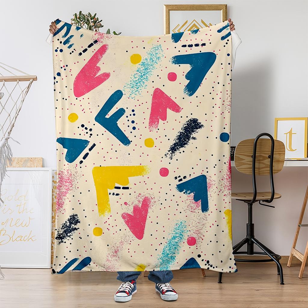 Bunte geometrische Mosaik-Flanell-Druckdecke, geeignet für alle Jahreszeiten, geeignet für Wohnzimmer, Büro, Sofa und Reisen