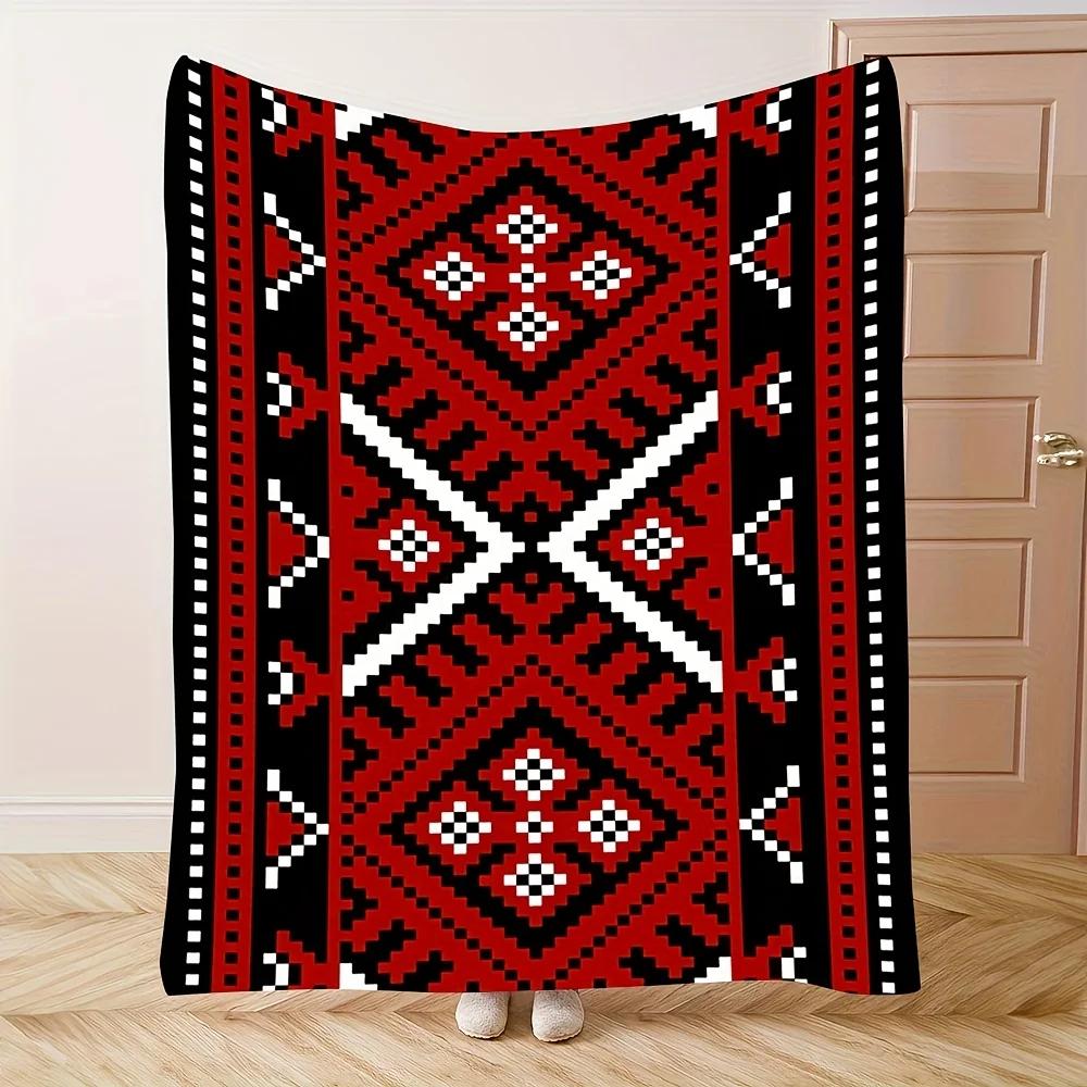 Klassische Rot Schwarz Geometrische Flanell bedruckte Decke geeignet für alle Jahreszeiten geeignet für Wohnzimmer Büro Sofa und Reisen