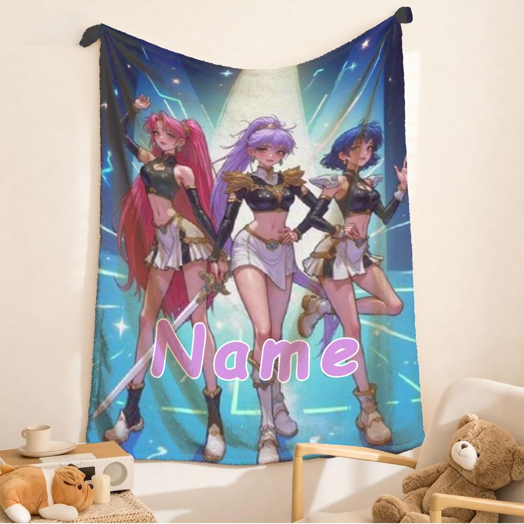 Personalized Anime Girls Blanket Name Custom Design Soft Fleece Throw Cosplay Fan Gift Home Decor Art