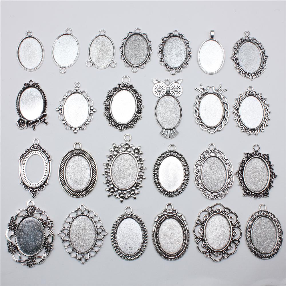 10 Stück 18x25mm Innenmaß Antik Silber Plated 31 Stile Cameo Cabochon Basis Fassungen Anhänger Halskette Zubehör
