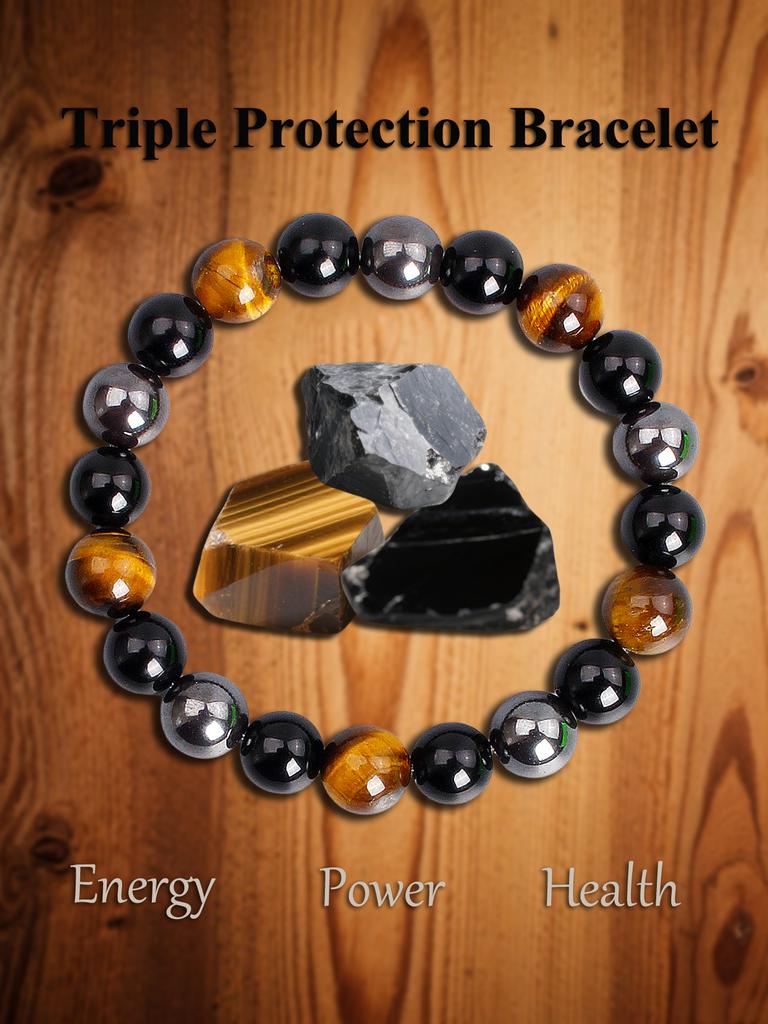 Natürliches Tigerauge Hämatit Obsidian Perlen Armband für Schutz Mut Erdung & Spirituelle Klarheit Energie Boost Schmuck