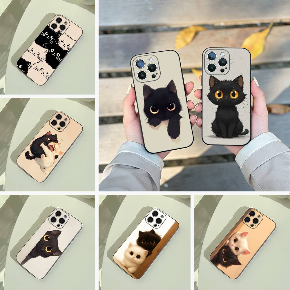 cartoon cats Phone Case For iPhone 17,16,15,14,13,12,11 Pro Max,16Plus,XS Soft Black Cover