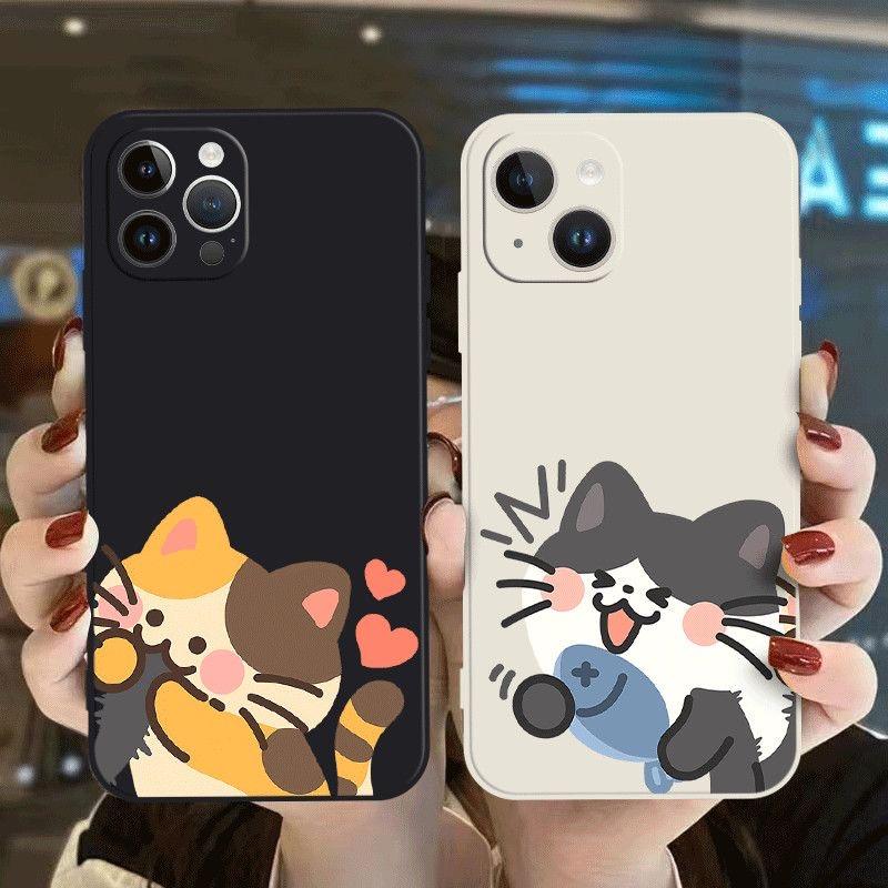 Cute Cat Couple Phone Case For IPhone 15 14 13 12 11 Pro Max Mini X XR 7 8 SE Plus SE20 Kawaii Cartoon Animal Spotted Cat Covers