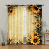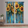 Set Of 2 Wooden Board Sunflower Print Curtains Suitable Bedroom Living Room Kitchen Decoration Home Window Curtain Polyester Perfect For Area