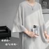 Herren Übergroßes Graues Waffelstrick Rundhals Kurzarm T-Shirt