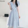 ZANZEA Damen Lässig Rundhals Sommer Ärmelloses Kleid