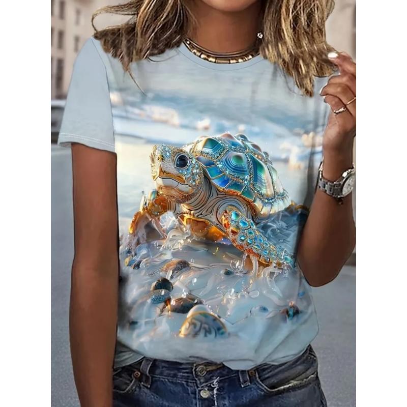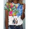 Modisches Damen Rundhals-T-Shirt Rundhals Kurzarm 3D Farbdruck