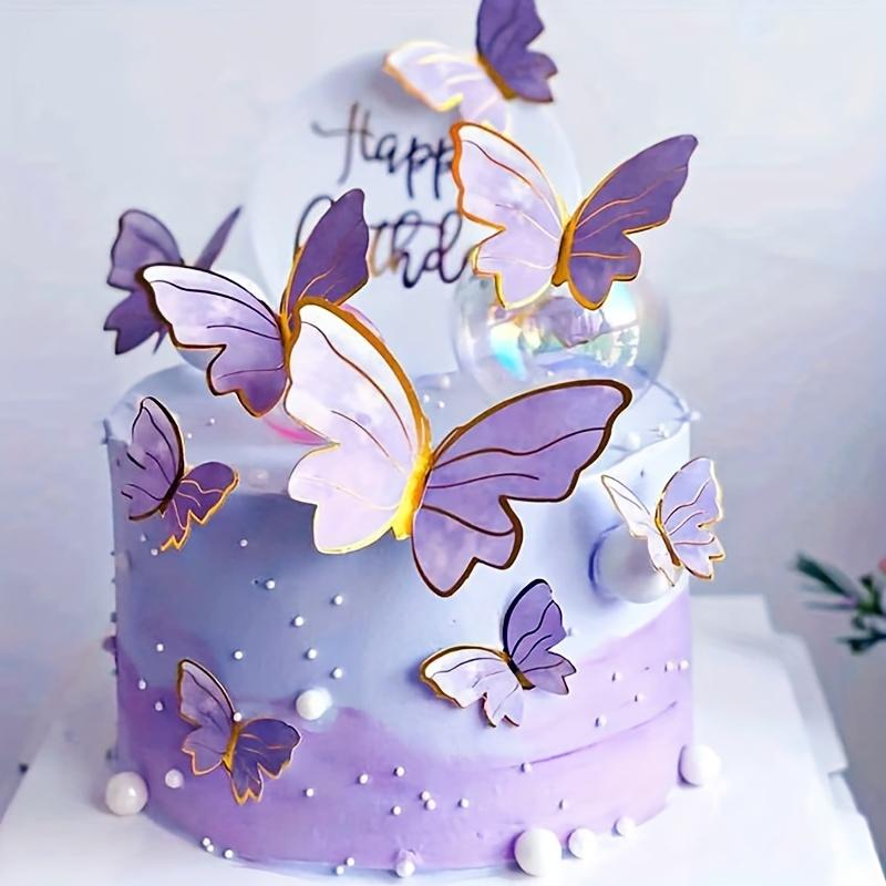 10Pcs Purple Butterflies for Cake Birthday Decorations Wedding Fairy Party Cake Butterflies for Birthday Wall Sticker Decal for Halloween