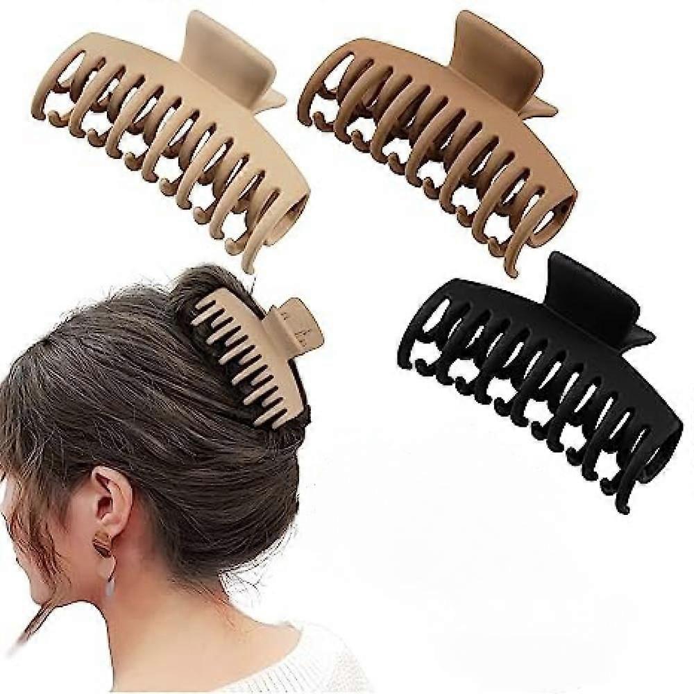 3 Pcs Large Double Row Teeth Hair Claw Clips 3.5" Medium Hair Clips For Thick Long Hair Clips Hair Accessories(Neutral)