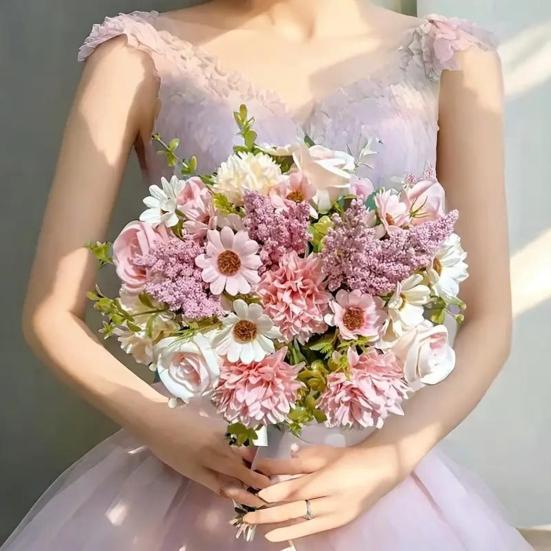 Künstlicher Rosenblütenstrauß Realistischer Gemischter Falscher Rosen Dahlien Chrysanthemen Kugelblumen für Hochzeit Brautsträuße Tischdekorationen Babyparty