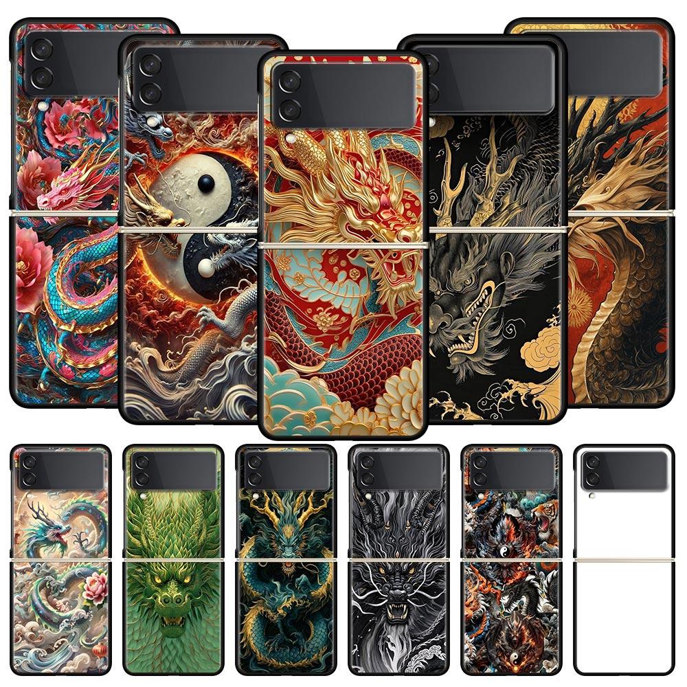 Chinoiserie Loong Flower Dragon Hard PC Phone Case For Samsung Galaxy Z Flip 7 6 5 4 Black Cover For Galaxy Z Flip 3 Foldable