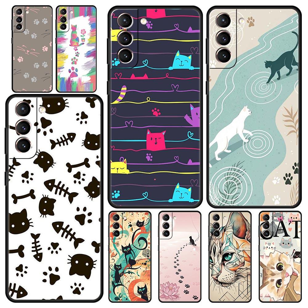 Abstract Creative Cute Cat Line Phone Case for Samsung Galaxy S26 S25 S24 S23 S22 S20 S21 FE Ultra S25 Edge Plus Soft TPU Cover