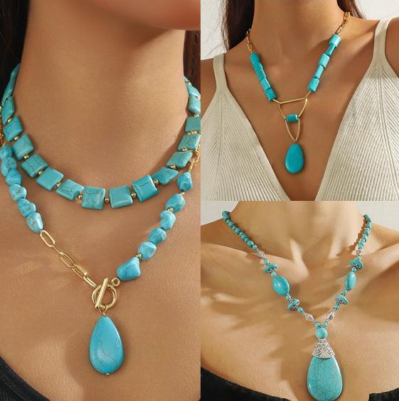 Natürliche Türkis Perlen Halskette, Boho Stil Gestapelte High-End Halskette