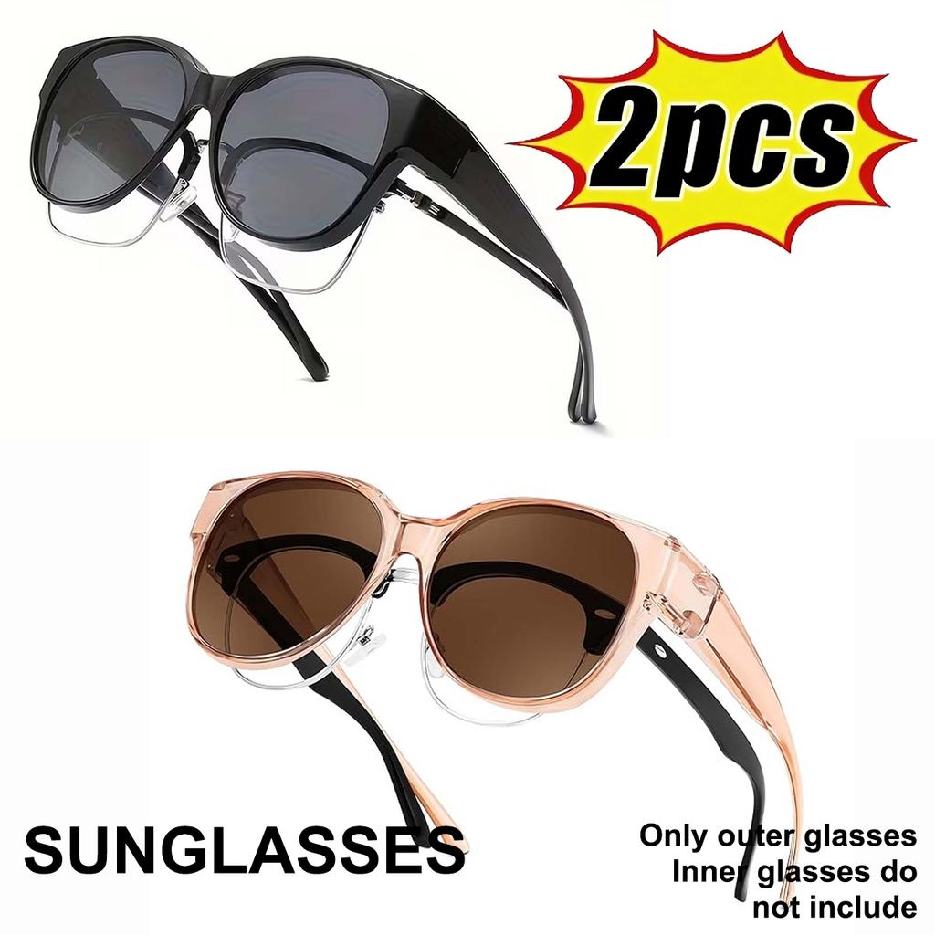 2 pack Sunglasses Over Glasses Women, Fit Over Glasses Sunglasses,Cat Eye Trendy Sun Shades UV400 Protection T03