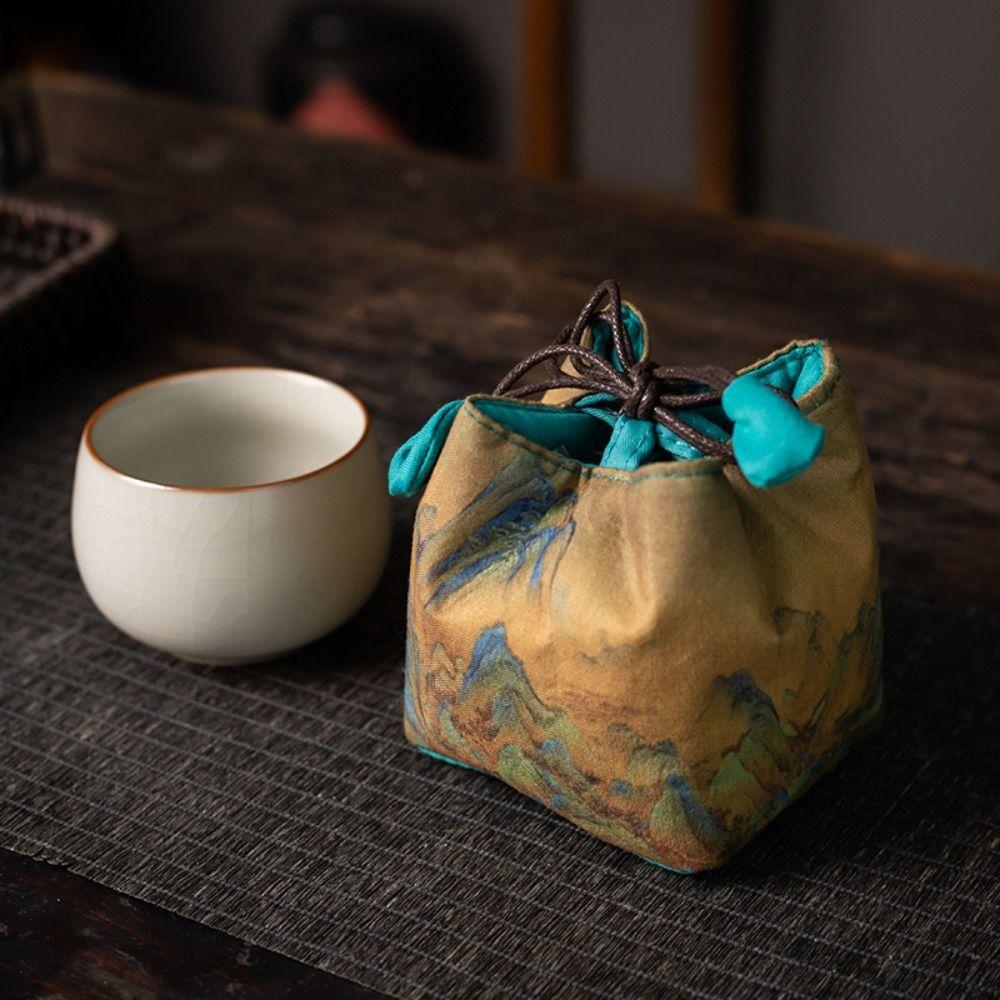 Bedruckte Teegeschirr-Aufbewahrungstasche Handtasche im chinesischen Stil mit Stickerei Kleine Tasche für Kleinteile