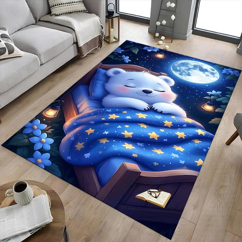 1 Stück Bär, Nacht Rutschfester Bodenteppich Kompatibel für Büro & Wohnzimmer & Schlafzimmer & Esszimmer - Flach - Webmaschine-S0348