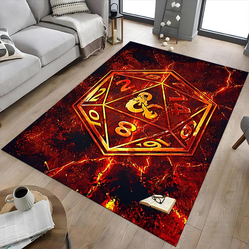 1 Stück Würfel & Drache Rutschfester Boden Teppich Kompatibel für Büro & Wohnzimmer & Schlafzimmer & Esszimmer - Flach - Maschinenweberei-S0313