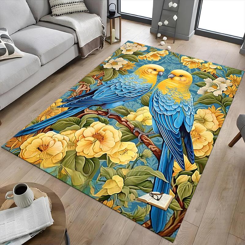 1 Stück Papageien Blumen Rutschfester Teppich für Büro & Wohnzimmer & Schlafzimmer & Esszimmer - Flach- Weich & Gemustert, Lebendige Farben-W300