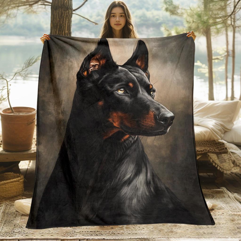 Dobermann Hundeporträt Fleecedecke Weiche Flanelldecke Haustierliebhaber Geschenk Heimdeko Kunstdruck Für Hundebesitzer Schlafzimmer Wohnzimmer