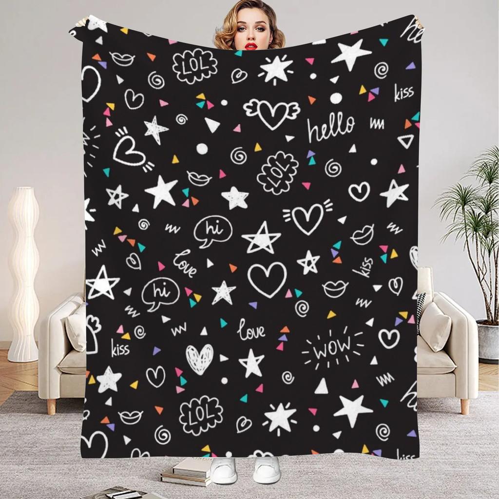 1Pc Digital Printed Pink Heart Star Style Flannel Blanket Mattress Cover Blanket for Family BedsSofasOfficesOutdoor Camping