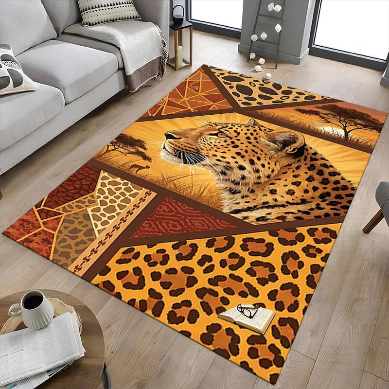 1 Stück Leopardenmuster Safari Extra Groß Rutschfester Teppich, Büro, Familie, Schlafzimmer, Studio - Großer Teppich für Innenbereiche, Lebendige Farben - A225
