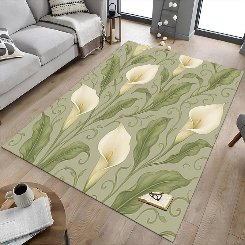 1PC Calla Lily Pattern Extra Large Non-Slip Floor carpet, Office, family, bedroom, Studio - Large Area Rug Indoor Rugs, Vibrant Colors-W212
