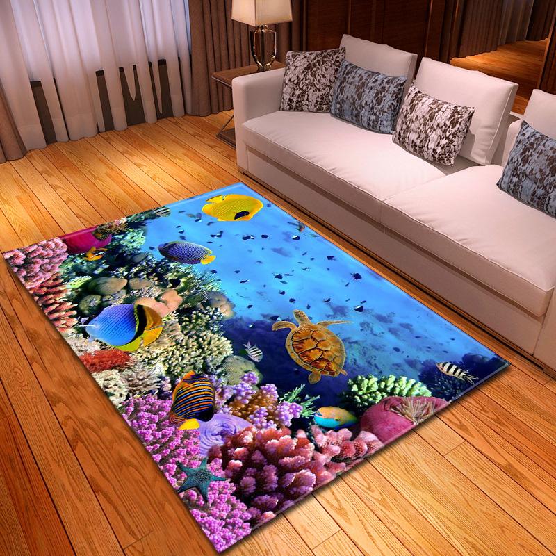 3D Meereswelt Fische Teppiche Delfine Haie Weicher Wohnzimmer Schlafzimmer Teppich für Jungen Heim Bodenmatte Küchen Fußmatte
