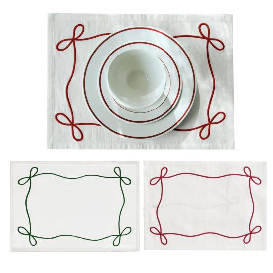 Elegantes nordisches Design: Mit einer zarten Schleifenstickerei auf einem cremeweißen Hintergrund verkörpert diese Serviette minimalistischen nordischen Stil.. Die feine Verarbeitung ohne Grate oder lose Kanten erhöht seine ästhetische Anziehungskraft und macht es zu einem schönen dekorativen Akzent, der bei jeder Tafel Aufmerksamkeit erregt.