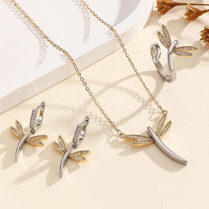 2026 Schmuckset Libellen Halskette Ohrringe Dreiteiliges Set Mode Diamantring Halsketten Zubehör Damen Premium-Gefühl