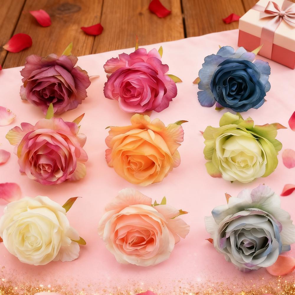 50Pcs Artificial Flowers Silk Roses Heads Home Wedding Decorations Valentine's Day Garland Palnts Wall Festival Diy Supplies Box