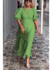 Damen Frühlings-Sommer Einfarbig Locker Sitzend Bequem Lässig Rundhals Pullover-Stil Kleid mit Puffärmeln