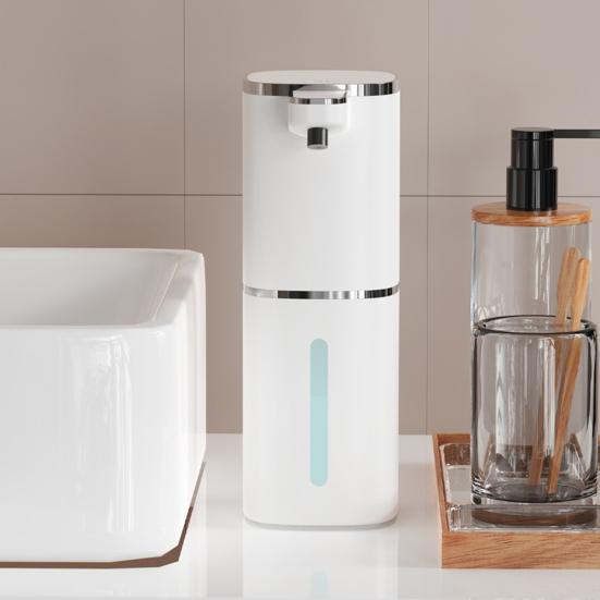 Effizientes Stromversorgungsdesign: Dieser automatische Seifenspender ist mit einem USB-Typ-C-Ladeanschluss und einem leistungsstarken 1200-mAh-Akku ausgestattet.. Es lädt in nur 3 Stunden vollständig auf und unterstützt bis zu 5.000 Zyklen mit einer einzigen Ladung, was eine langanhaltende Leistung und Bequemlichkeit gewährleistet.