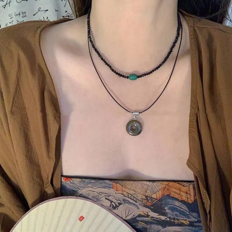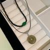 2 Stück Vintage Friedensschnalle Anhänger Halsketten Naturstein Perlen Ketten Choker Halskette Set Damen Herren Chinesischer Stil Schmuck