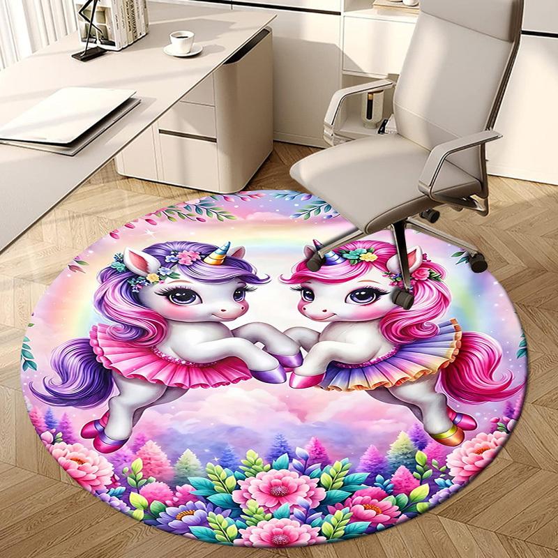 1 Stück Einhorn rutschfester runder Teppich für den Boden, Büro, Familie, Schlafzimmer, großer Teppich, Teppiche für den Innenbereich, strapazierfähiges Polyester H0394