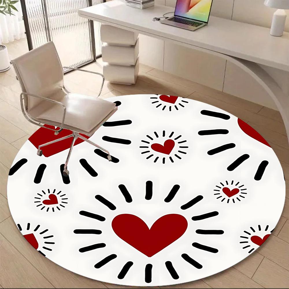 1pc Love Hearts Office Round Area Rug, Indoor Mat Suitable ForOffice, Under Office Chairs Bedroom Living Room Home Decor, Room Decot260